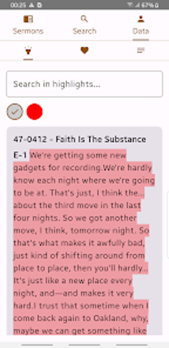 أحد أكثر أجزاء التجربة فائدة هو تشغيل الصوت المتزامن. بينما تستمع إلى عظة، يتم تمييز النص بنفسه في الوقت الحقيقي حتى تتمكن من القراءة دون فقدان مكانك. هذا يجعل من السهل جداً التقاط كل كلمة تُقال. بالإضافة إلى مجرد الاستماع، يحتوي التطبيق أيضاً على ميزة التمييز الذكي، مما يسمح لك بتمييز مقاطع محددة تبرز لك يدوياً.